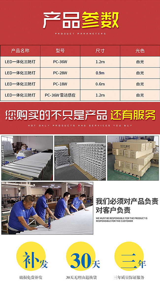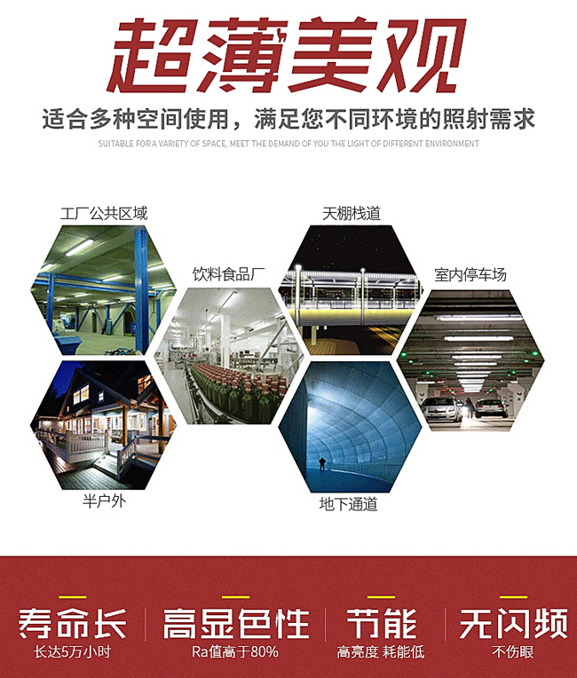 工廠車間、辦公室、食品廠、冷庫、商場、超市、紡織廠、防腐等場所的照明,