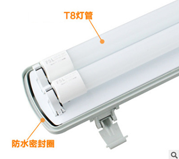 2:T8普通日光燈三防燈具,T8三防燈是一款應用比較廣的燈具,是針對普通日光燈來設計的,有通用
