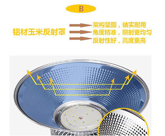 2.鋁材反光罩含多個(gè)折射凹槽,對稱配光,光線均勻,亮度更高.