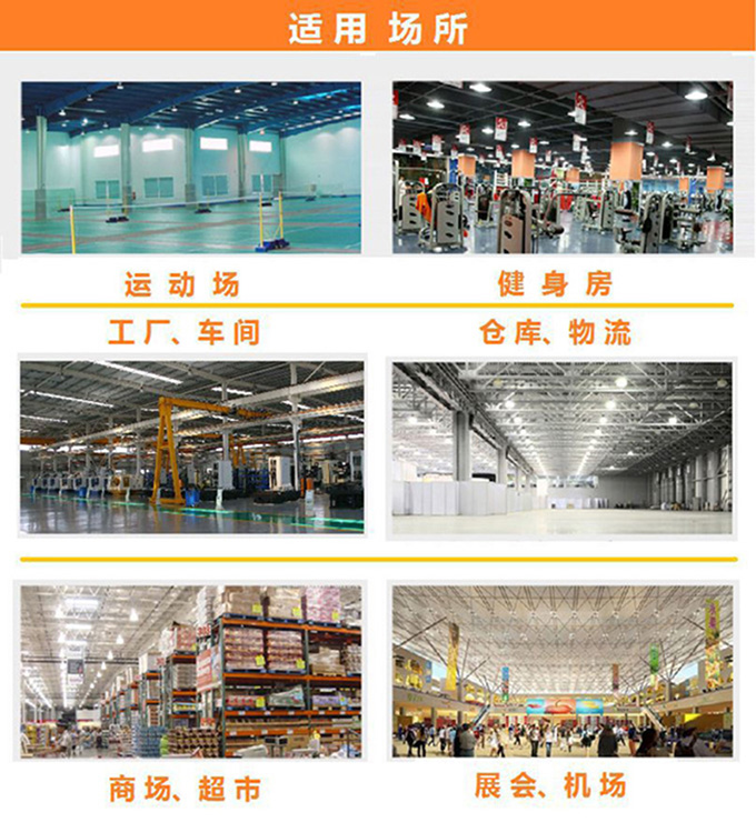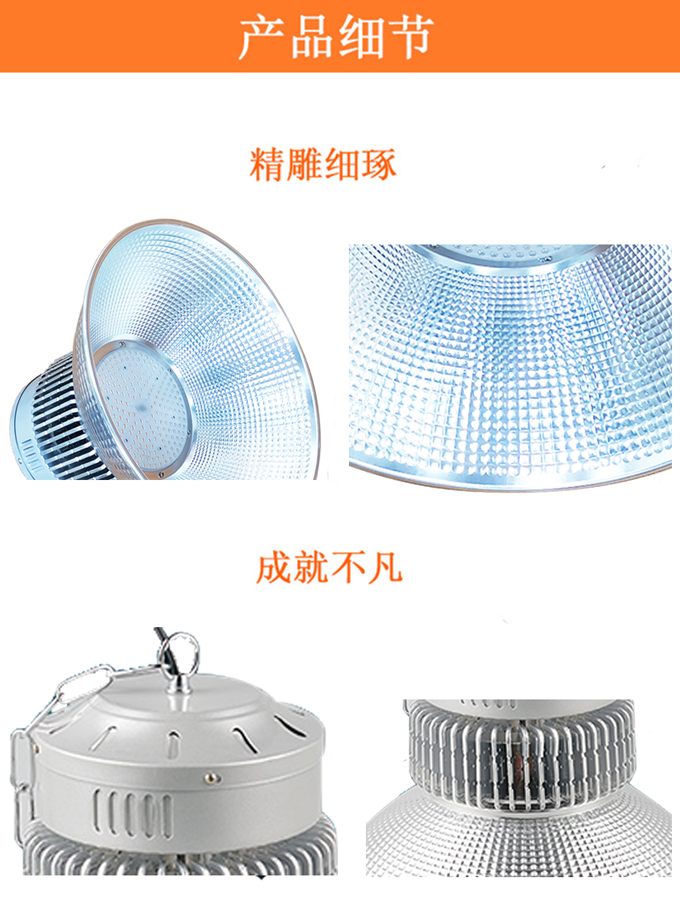• 產(chǎn)品簡介:產(chǎn)品特點(diǎn): 1.鏤空鰭片散熱設(shè)計(jì),增加空氣對流面積,熱量排除更快,降低光衰,增加燈具壽命. 2.鋁材反光罩含多個(gè)折射凹槽,對稱配光,光線均勻,亮度更高. 3.高透光PC芯片保護(hù)罩 4.采用高光效3030貼片燈珠,光效高,出光均勻 5.可選反光罩角度,寬配光或窄配光 6.恒流電源,抗浪涌,寬電壓 適用范圍: 廠房 車間 倉庫 展覽館 體育館 等等 安裝方式: 吊桿 吊鏈