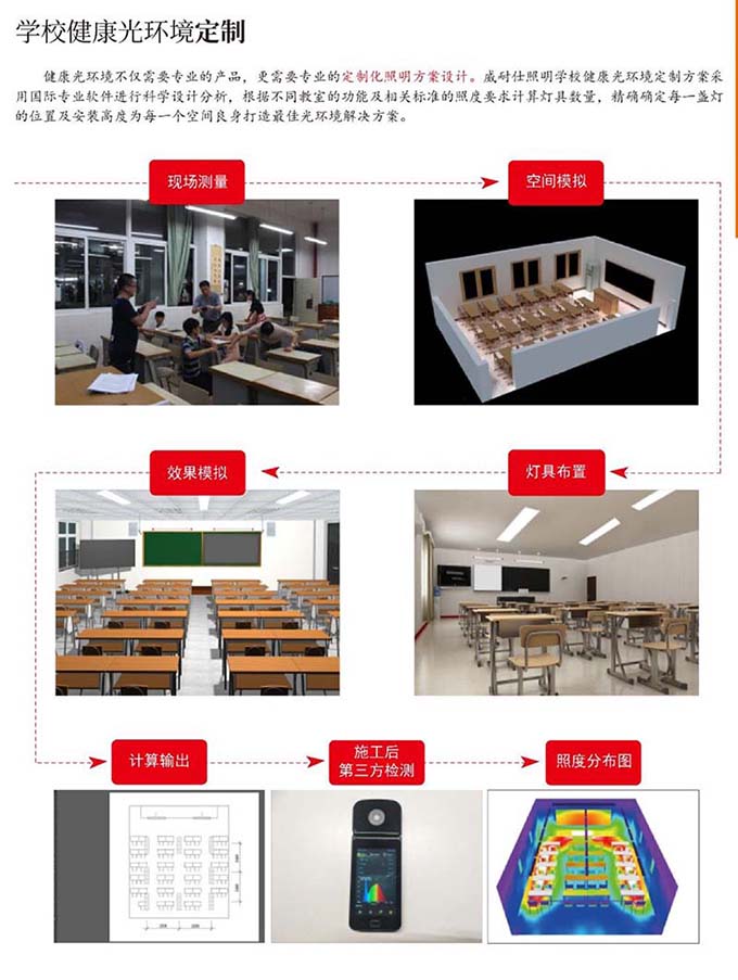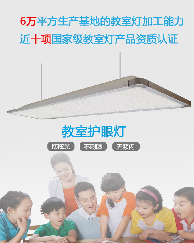 教室燈的燈光顏色更加真實,不刺眼,學(xué)生眼睛很舒適,疲勞度低,不會因為眼睛疲勞而產(chǎn)生厭學(xué)心理,降低近視率。