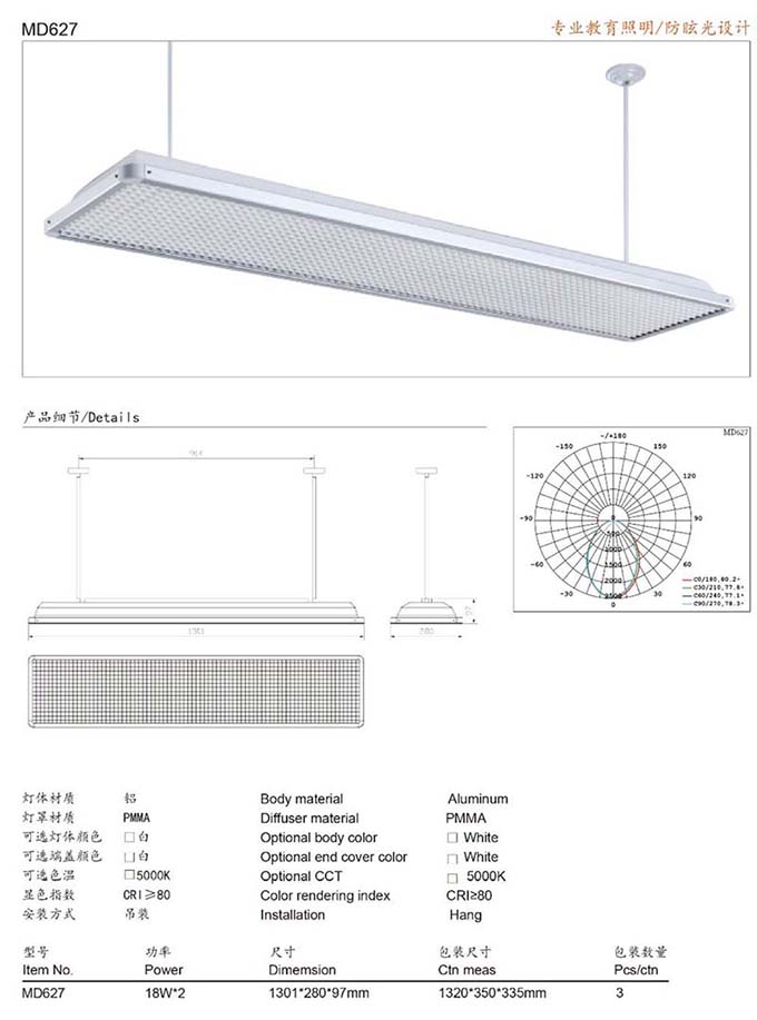 1.多格柵深防眩擴散板設(shè)計,不刺眼、無頻閃保護視力