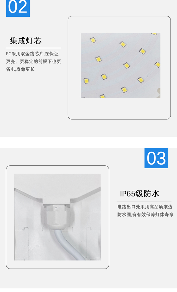 3.集成燈芯PC采用雙金線芯片,在保證更亮、更穩(wěn)定的前提下也更省電,壽命更長
