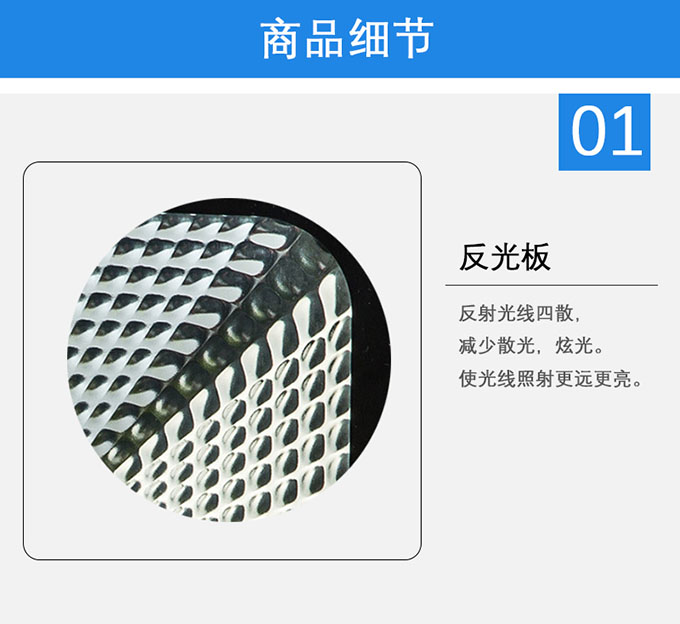 1.優(yōu)質(zhì)方光板,反射光線四散,減少散光,炫光。使光線照射更遠(yuǎn)更亮。