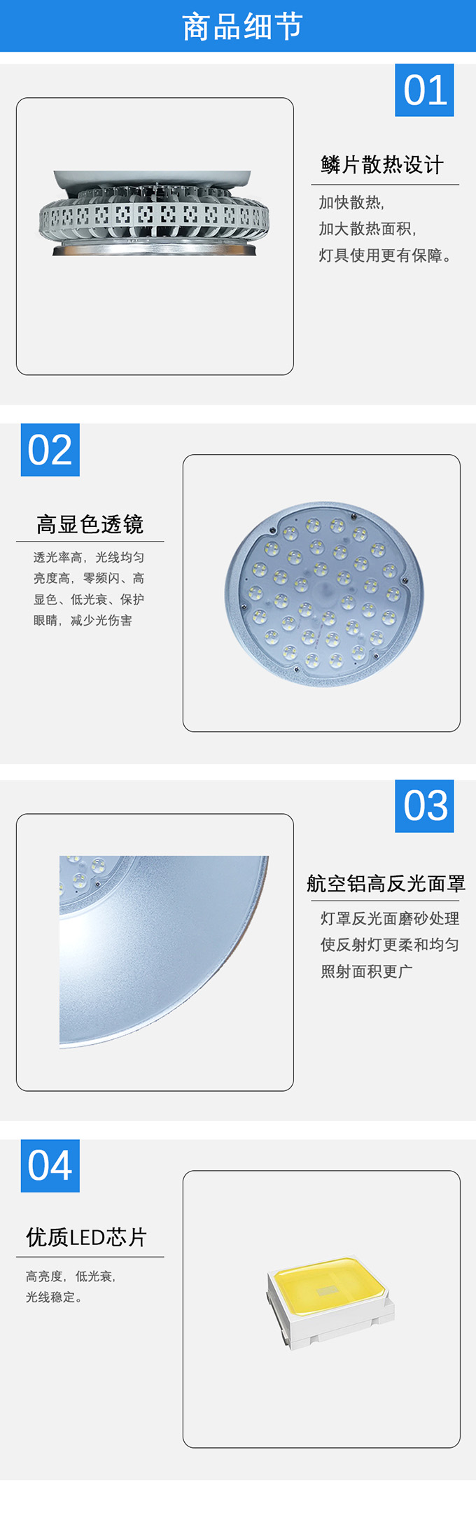 • 產(chǎn)品簡(jiǎn)介:1.鱗片散熱設(shè)計(jì) 加快散熱, 加大散熱面積, 燈具使用更有保障。 2.高顯色透鏡 透光率高,光線均勻 亮度高,零頻閃、高 顯色、低光衰、保護(hù) 眼睛,減少光傷害 。 3.航空鋁高反光面罩 燈罩反光面磨砂處理 使反射燈更柔和均勻 照射面積更廣 。