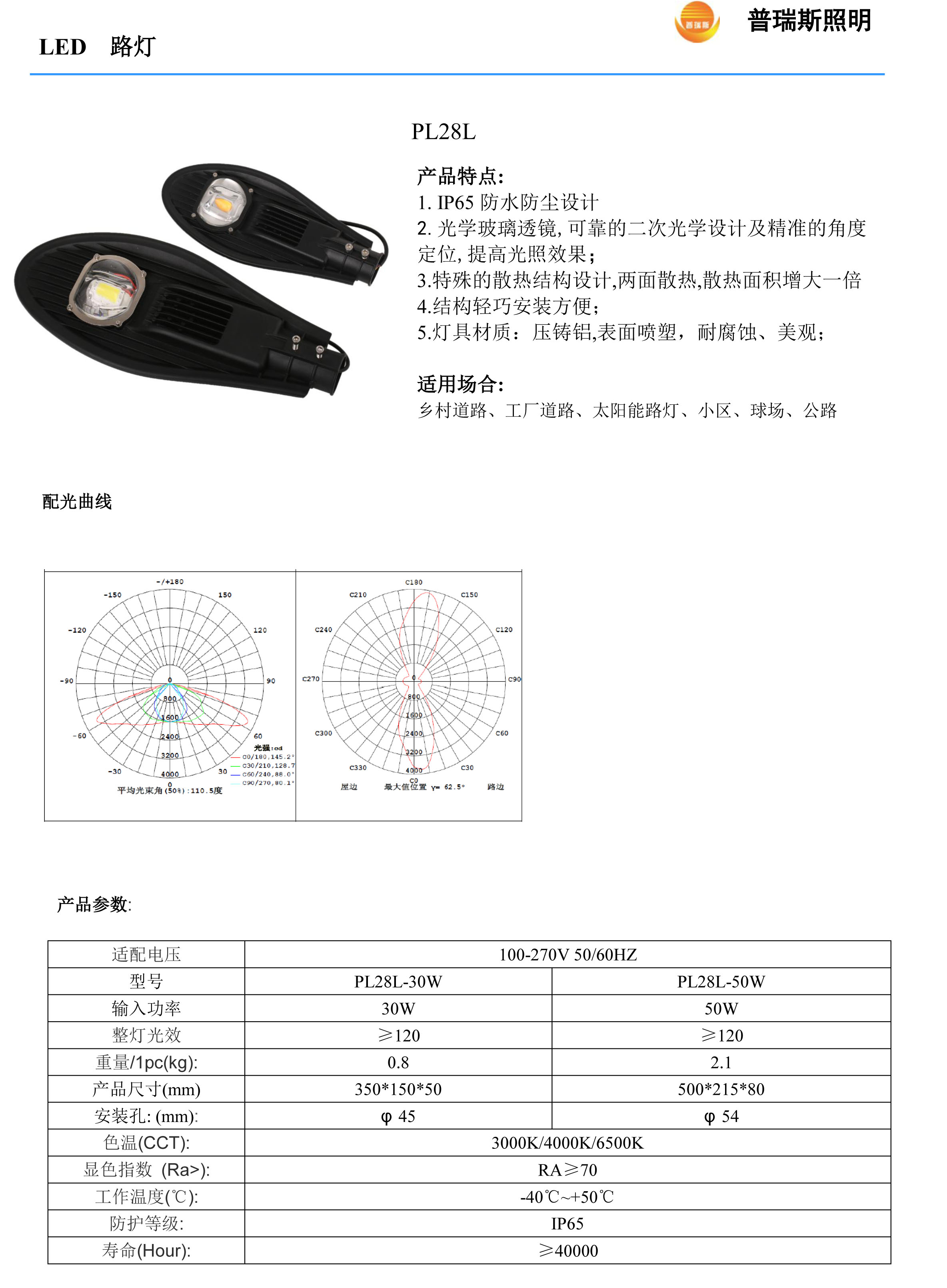 2、特殊燈型根據(jù)設(shè)計(jì)要求安裝,燈的高度在致相當(dāng)于需要被照明馬路的寬度。只在一側(cè)照明時(shí) H≌L 在兩側(cè)照明時(shí) H≌L/2 其中,H:燈具安裝高度(米) L:路寬(米)